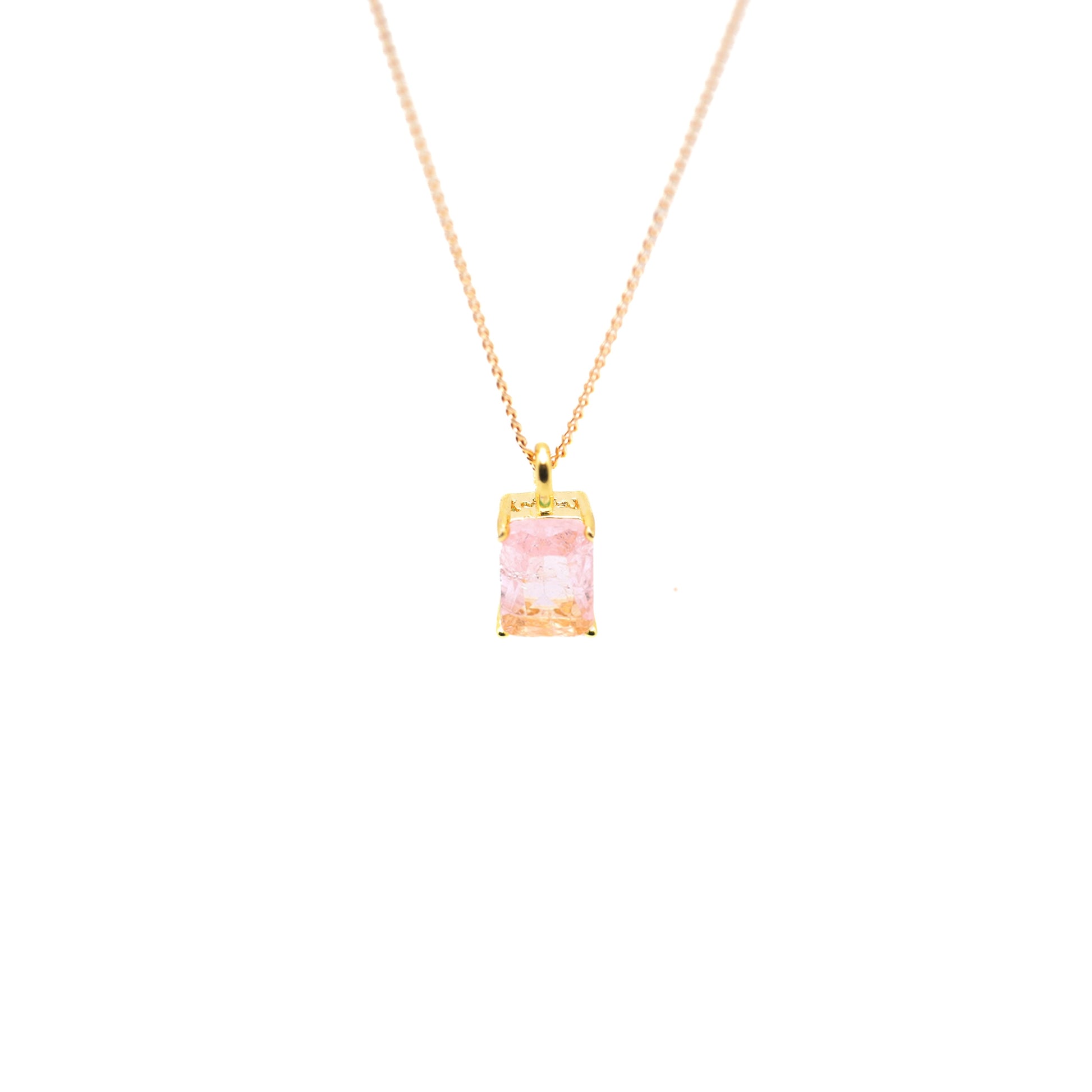 أضيفي لمسة من الألوان إلى مجموعة مجوهراتك مع قلادتنا الأنيقة المطلية بالروديوم باللون الذهبي المُورَّد.